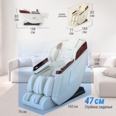 - Возможности. Автоматическое обнаружение и точная настройка положения плеч, изгибов тела и массажных акупунктурных точек, аэромассаж верхней части тела, функция аэромассажа ладоней (4 воздушных массажера), функция аэромассажа рук ((4 воздушных массажера), 3 уровня интенсивности давления воздуха. Аэромассаж нижний части тела: функция аэромассажа икр (12 воздушных массажера) + 3 уровня интенсивности давления воздуха. Воздушные массажеры для левой и правой ладони оснащены функциями ударного массажа и магнитной терапии. Функция роликового массажа ступней состоит из трех комплектов валиков, которые  массируют пальцы и ступни ног, своды ступней, скорость регулируется тремя положениями. Скребковый массаж с роликами для ног, телескопическая функция для упругих ног.